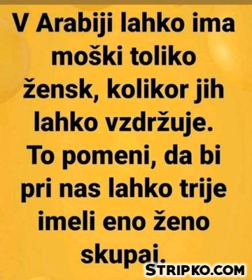 V Arabiji lahko ima moški toliko žensk, kolikor jih lahko vzdržuje. To pomeni, da bi pri nas lahko trije imeli eno ženo skupaj.